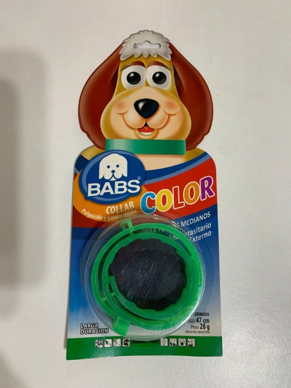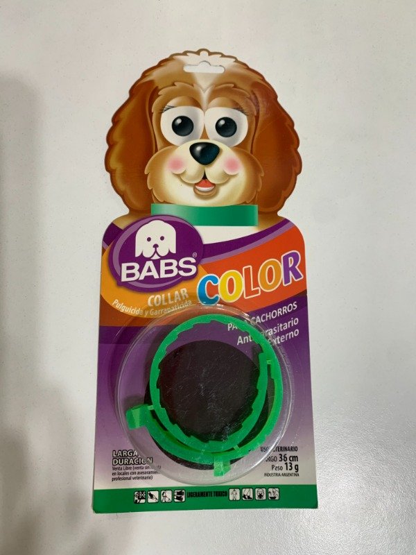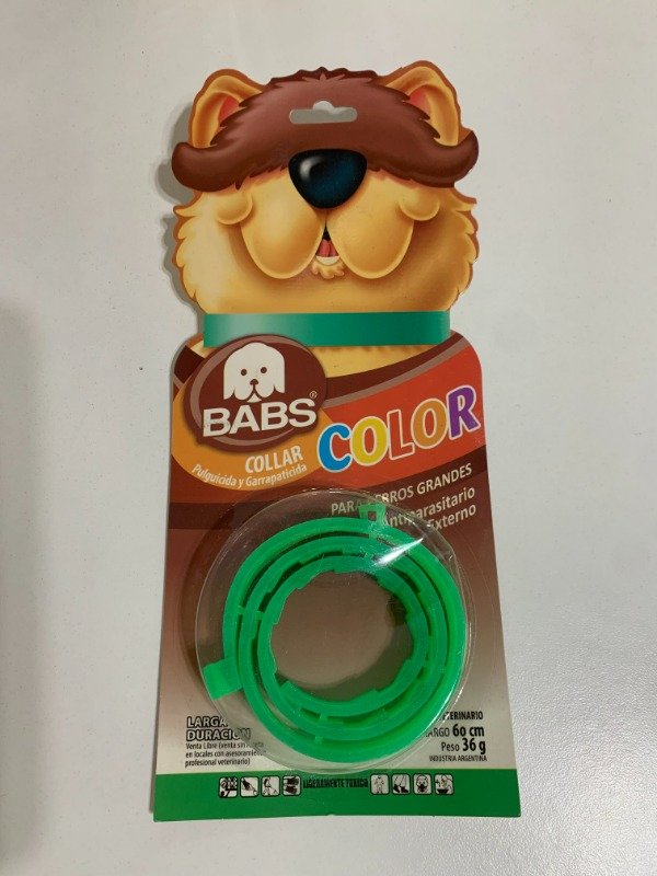 El Collar Babs, por el roce con el cuello del perro, libera polvo parasiticida que se esparce por todo el cuerpo. Mata pulgas y garrapatas brindando efectiva protección durante 4 meses.